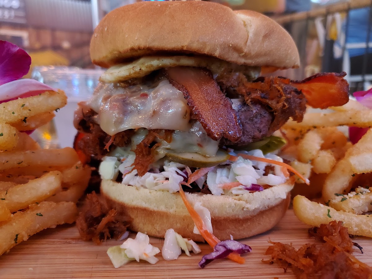 The menu leans heavily on fried favorites and classic comfort foods, with standout items like Fish and Chips, the Trust Me Burger, and unique bites such as Caribbean Poke and Cucumber Nachos. For those craving bold, hearty flavors, options like the Tsunami Burger and Hang Ten Bacon Clothesline deliver on portion and punch, though diners mindful of lighter fare will find fewer selections. Vegetarians aren’t left out either, with choices like the Impossible Burger holding their own amidst the meatier dishes.